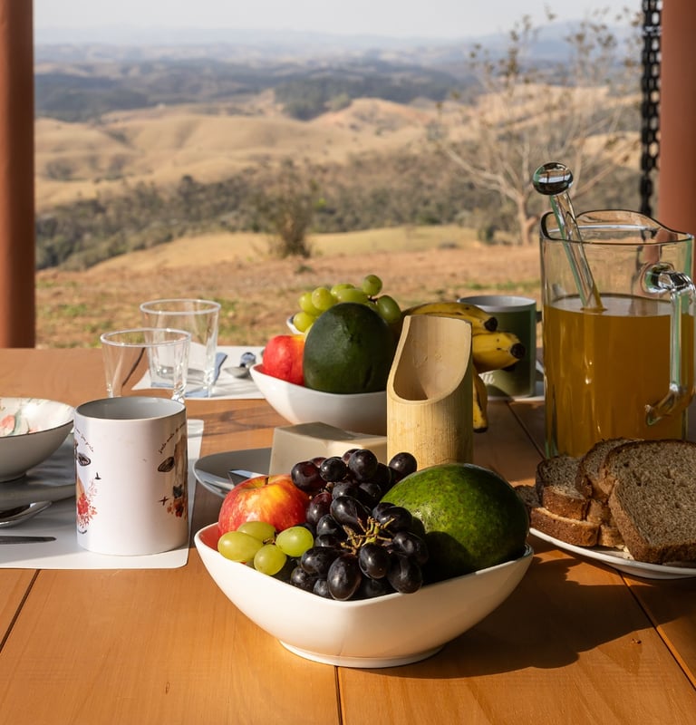 Aqui, a natureza se faz presente em cada detalhe, no canto dos pássaros, na contemplação dos animais livres, nas paisagens abraçadas pelas montanhas, no nascer e no pôr do sol que são espetáculos únicos... Tudo isso desperta emoção logo ao chegar aqui!